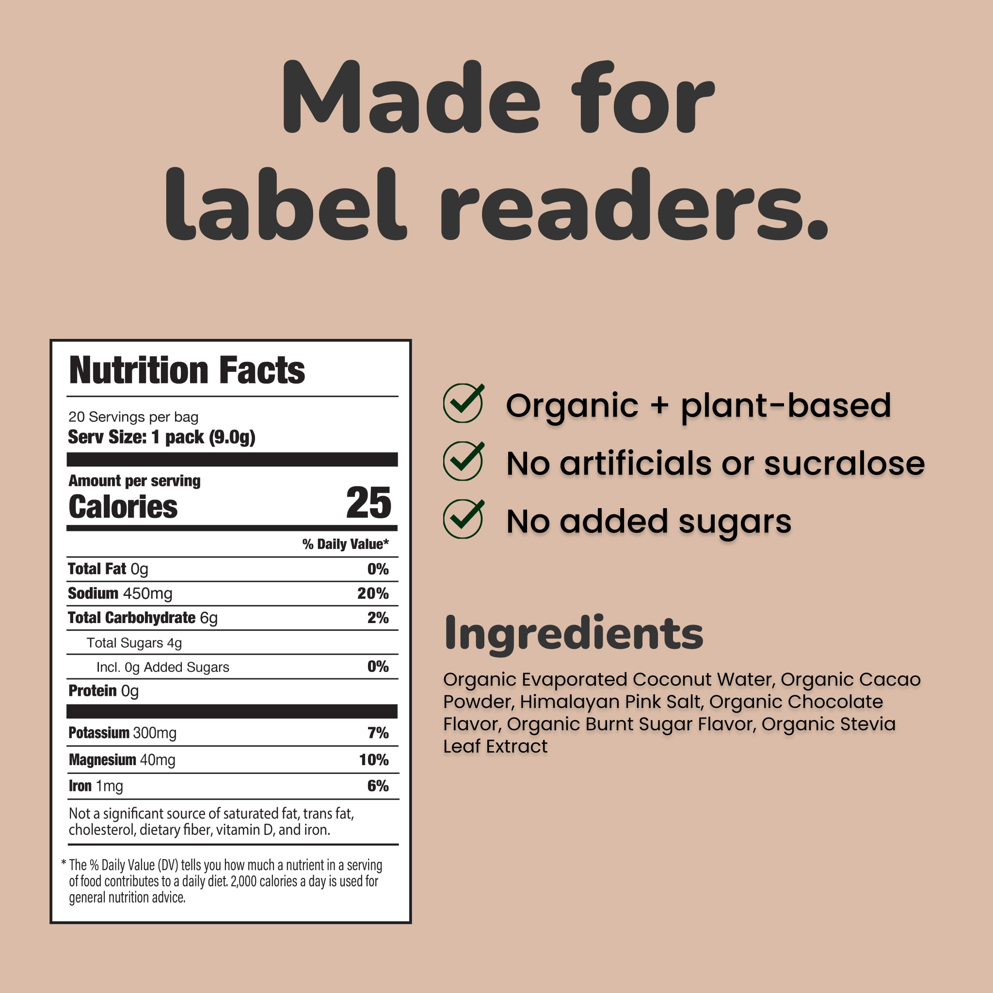 Rich organic cocoa brings a smooth satisfying twist to your hydration.