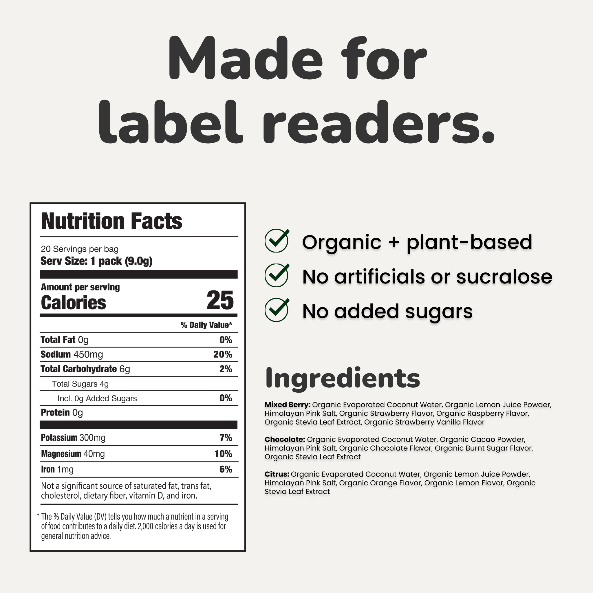 Clean Ingredients | Organic, nothing fake | Artificial flavors and colors |