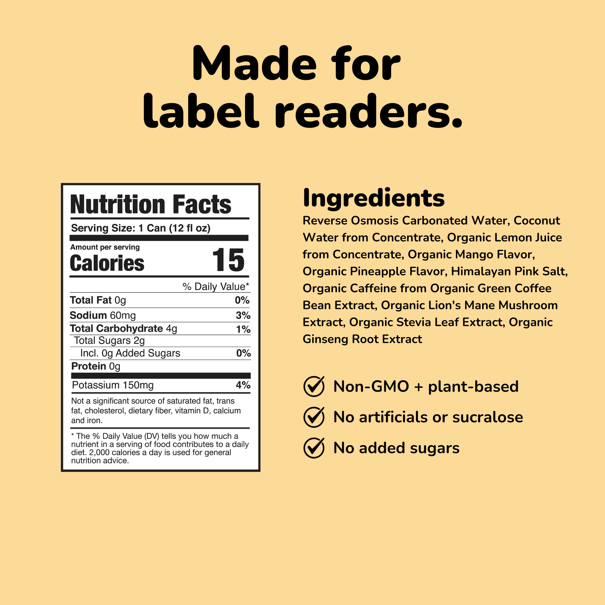 Boosters | Nootropics + adaptogens (lion's mane, ginseng, caffeine) | Artificial or unrecognizable ingredients |