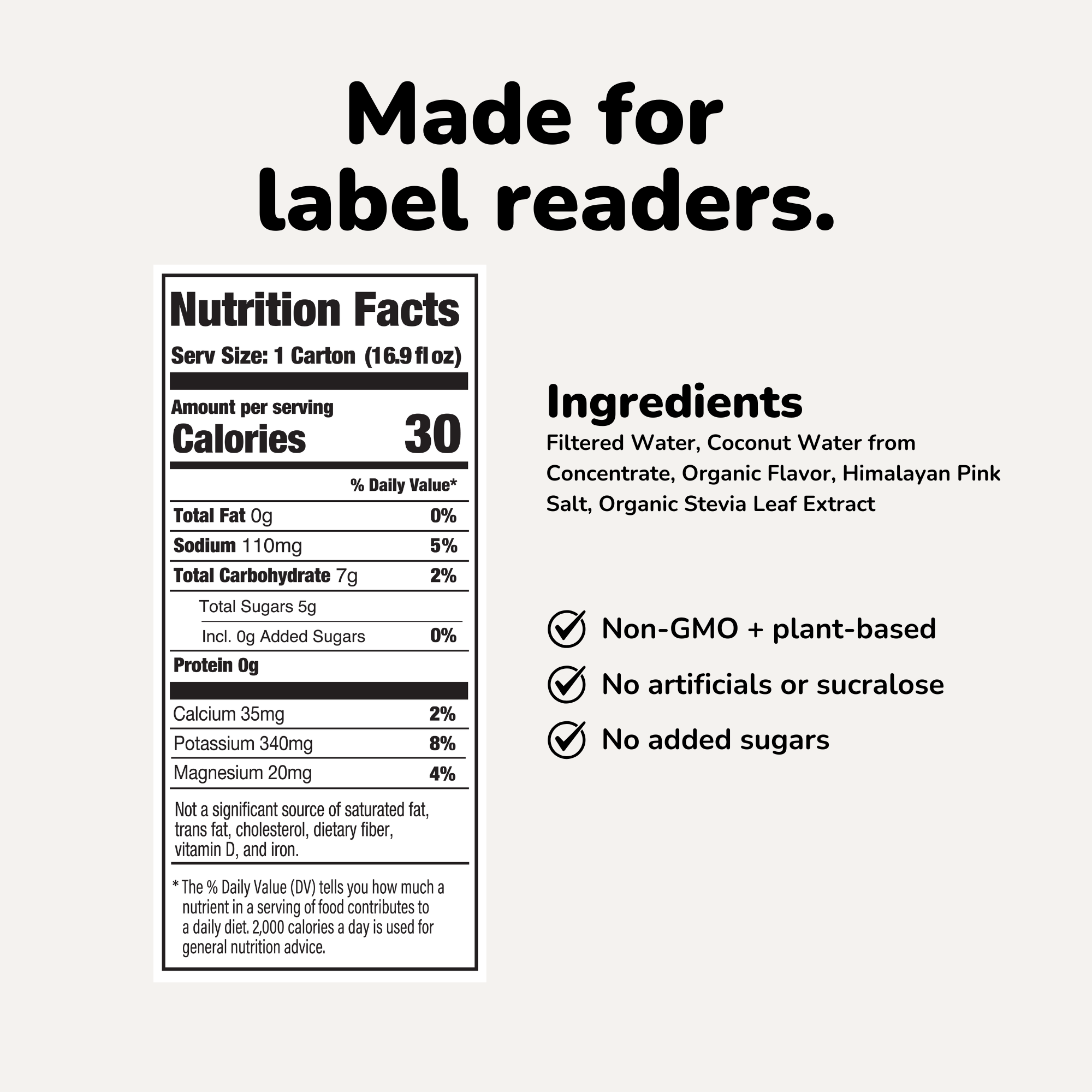 Naturally rich in potassium, an essential electrolyte that supports hydration, muscle function, and nerve signaling.